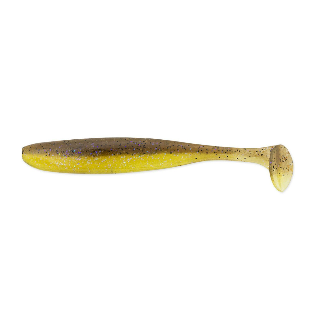 Der Easy Shiner von KEITECH ist eine gelungene Mischung aus Shad Impact und Swing Impact. Der flache Körper flankt im Takt des Schaufelschwanzes und lässt die Seiten immer wieder aufblitzen. Die Gummimischung im unteren Bereich des Easy Shiners ist sehr stark gesalzen und verleiht dem Gummifisch selbst ohne zusätzliche Beschwerung einen sehr stabilen Lauf. Auf der Ober- und Unterseite befinden sich Aussparungen im Gummi, damit der Easy Shiner perfekt an WideGap- und Offset-Haken montiert werden kann. Die Verbindung zum Schaufelschwanz ist extra dünn gehalten, damit der Easy Shiner selbst bei langsamster Einholgeschwindigkeit zuverlässig spielt. Die Easy Shiner sind gesalzen und mit Tintenfisch-Aroma versehen. Ein weiterer Köder aus dem Hause KEITECH, der vor allem bei Barschen und Forellen hoch im Kurs stehen wird!