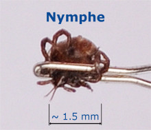 Zecken durchlaufen in ihrem Leben die drei Stadien Larve, Nymphe und Adulte. Die Zeckennymphe ist das Stadium, das die Mehrzahl der Stiche am Menschen verursacht. Minizecken vom Menschen oder Tier entfernen? Eine berechtigte Frage, denn im Tierfell werden Zecken in der Regel erst nach längerer Saugzeit und entsprechender Größe entdeckt. Apothekenübliche Instrumente sind für große Zecken wie z.B. am Tier geeignet. Auf menschlicher Haut ist die bis zu ein Millimeter winzige Zecke ohne Größenzunahme erkennbar. Die sofortige Entfernung nach den Kriterien des Robert Koch Instituts (RKI) beugt einer Infektion bestmöglich vor. Dank Nymphia ein Kinderspiel. Zecke raus drehen oder ziehen? Drehen birgt die Gefahr, dass der Stechapparat (Hypostom) von der Zecke abgetrennt wird und in der Haut zurückbleibt. Besser ist die i.d.R. rückstandsfreie Methode durch Ziehen, wie vom RKI empfohlen. Hausmittel wie ÖL, Kleber, Nagellack etc.? Auf keinen Fall, laut RKI wird die Zecke zur Abgabe von Speichel und möglicher Infektionserreger gereizt. Zeckenbiss oder -stich? Biologisch eindeutig ein Stich. Der im Volksmund übliche Biss wird fälschlicher Weise am häufigsten verwandt. Besser als sofortige und sichere Entfernung der Zecke ist Prävention vor dem Stich.