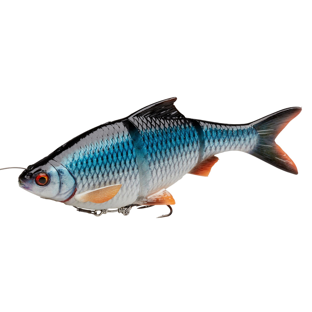 Das Rotauge ist eines der wichtigsten Beutetiere für viele Süßwasser-Raubfische auf der ganzen Welt. Wir haben das Verhalten, die Details und die Bewegungen dieser Spezies im Detail studiert, um eine Reihe von Ködern zu entwickeln, die aggressive Schläge von hungrigen Raubfischen hervorrufen. Die Köder der Savage Gear 4D Roach Serie basieren alle auf einem 3D-Scan eines echten Rotauges und werden Sie mit ihren Details, ihrem Realismus und ihren unglaublichen Schwimmaktionen verblüffen. Ganz einfach, dies ist der Gipfel der Rotaugenimitation, die genau wie das Original aussieht und schwimmt. Unser berühmtes Line-Thru-System wurde weiterentwickelt, so dass der Haken an der breitesten Stelle des Körpers frei schwingen kann, was eine hervorragende Köderführung und noch bessere Landequoten garantiert. Der neue Little Line Thru Modifier ist eine großartige Innovation, und der Köder lässt sich leicht so umbauen, dass er zwei Drillingshaken aufnehmen kann. Das hohe Körperprofil des Köders sorgt für die erstaunlichste S-Kurven-Schwimmaktion, die beim Spin-Stopp schneidet und zur Seite gleitet - eine Bewegung, die die Hechte einfach verrückt macht. Die langsam sinkende Version hat den Line Thru-Kanal durch das Maul und sinkt sehr langsam. Man kann ihn zucken und ziehen, um erstaunliche Gleitbewegungen zu erzielen. Die moderat sinkende Version läuft tief mit einer großen S-Kurve, bewegt viel Wasser und lockt die großen Fische an.